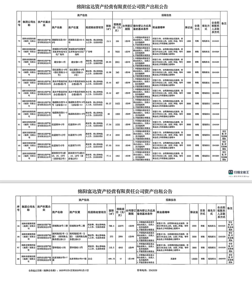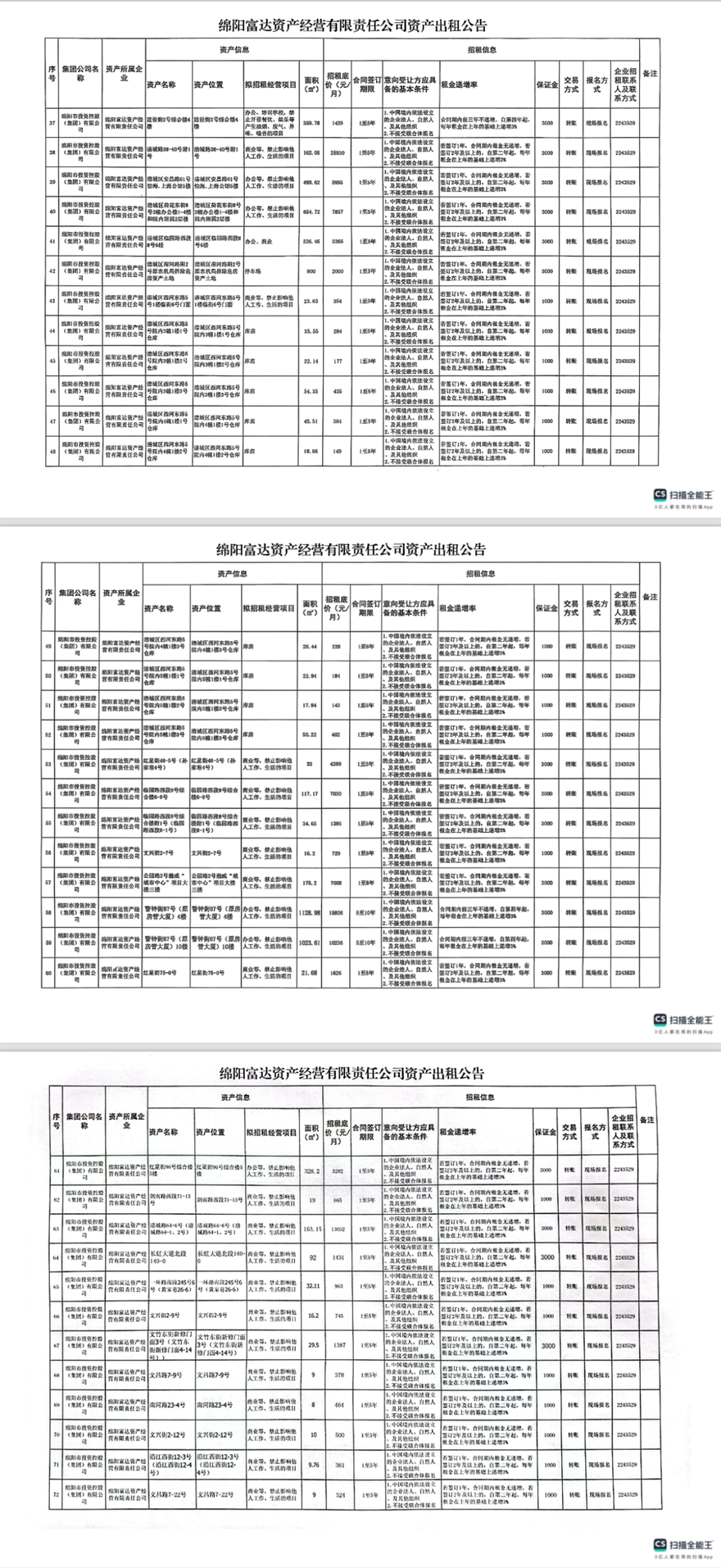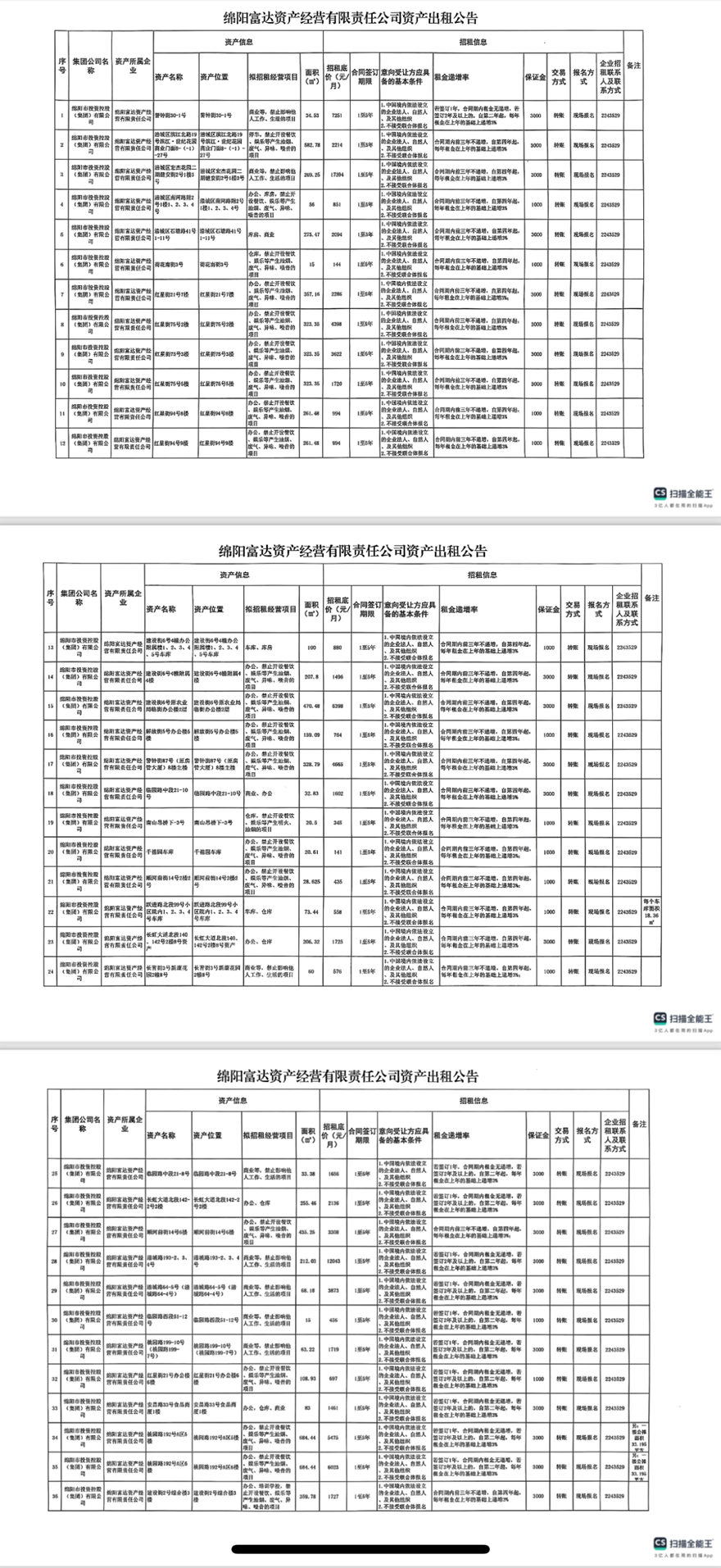 綿陽富達資產(chǎn)經(jīng)營有限責(zé)任公司資產(chǎn)出租公告