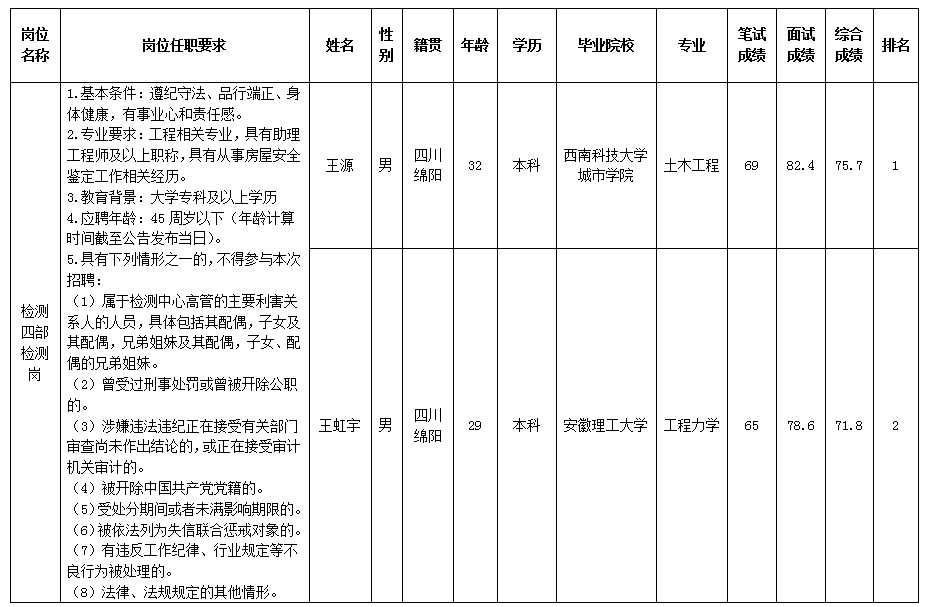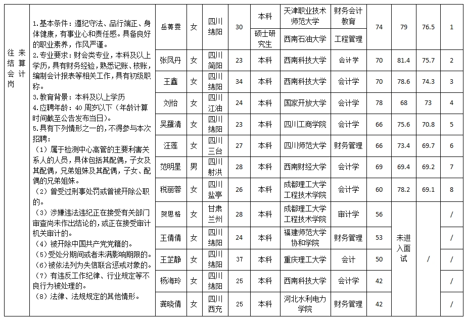 根據綿陽市建設工程質量檢測中心有限責任公司發(fā)布的招聘公告及招聘相關規(guī)定,現將筆試、面試成績予以公示。