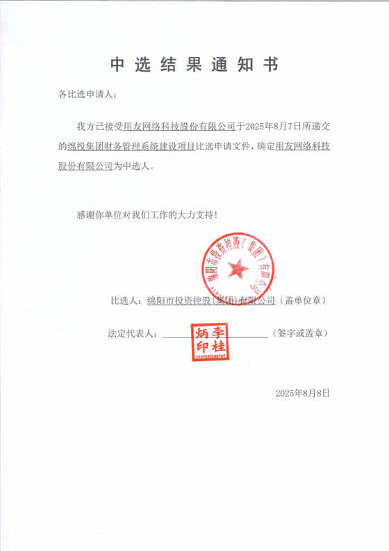 綿投集團財務管理系統(tǒng)建設項目中選結(jié)果通知